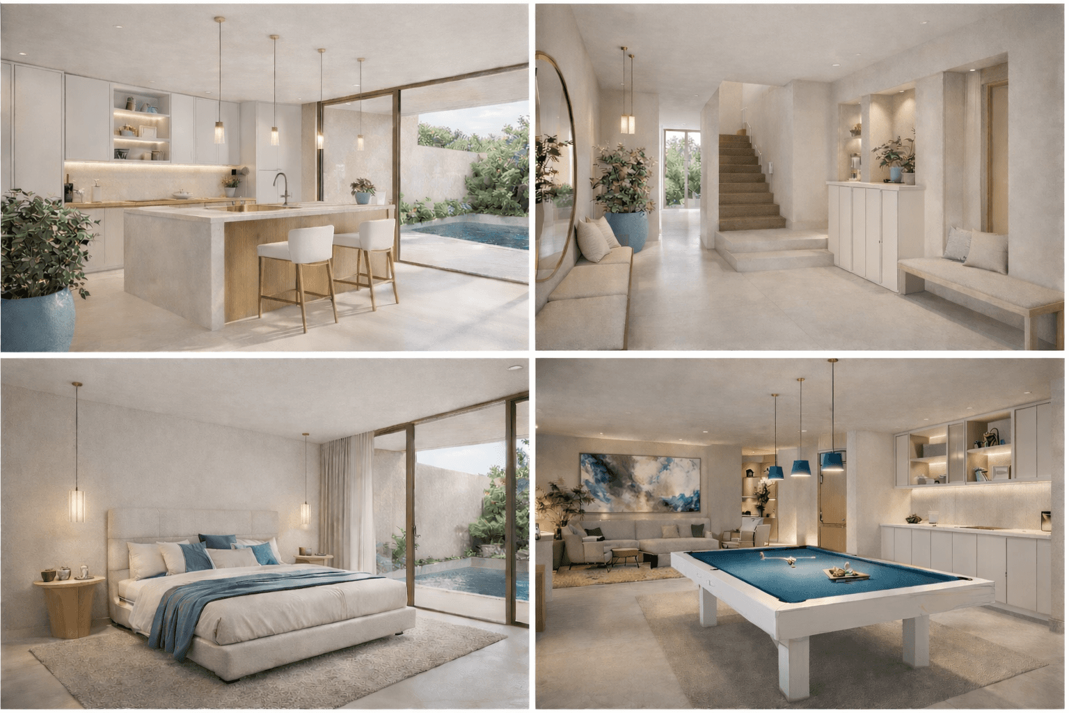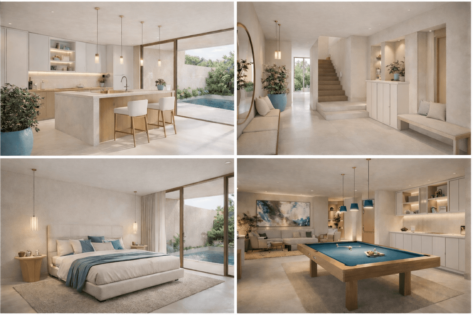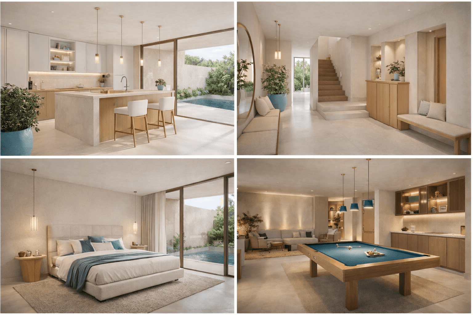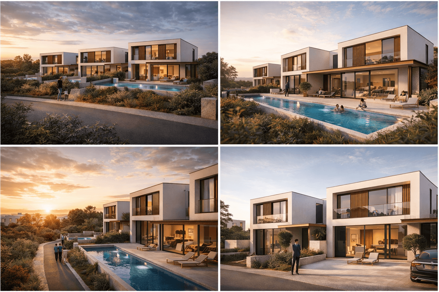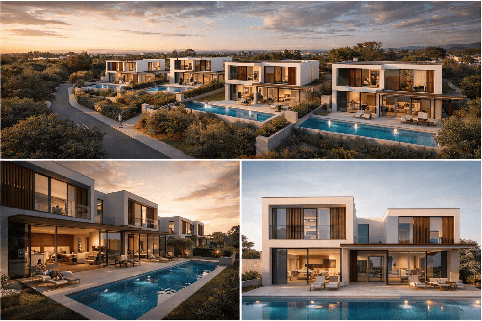 Cada residência foi concebida com uma visão clara: oferecer amplitude, privacidade e conforto ao mais alto nível. Suítes generosas, áreas sociais amplas, cozinhas integradas com design contemporâneo e materiais nobres compõem um ambiente onde cada detalhe foi pensado com rigor. Pedra natural, madeira selecionada e acabamentos premium reforçam uma estética intemporal e elegante.